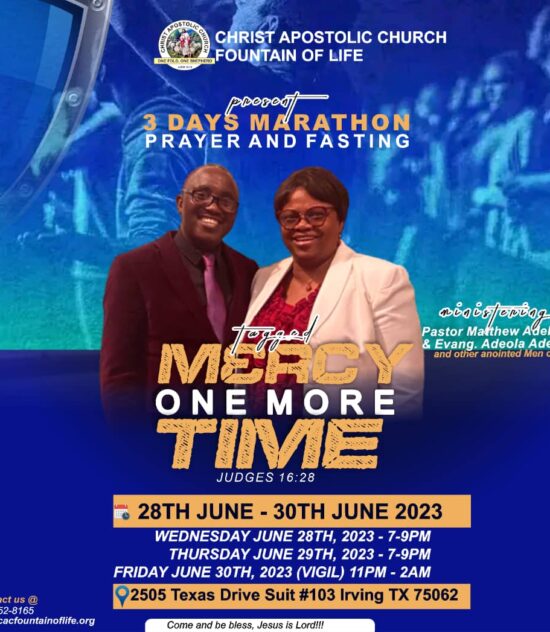 Welcome to Christ Apostolic Church (Fountain of life ministry) , a place of power and love, a place to grow to become what God has ordained you to be. As a child of God, you have come to your Father’s house.